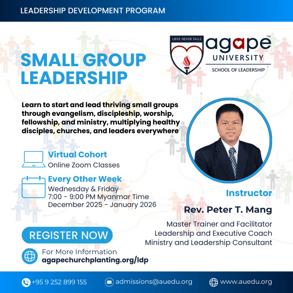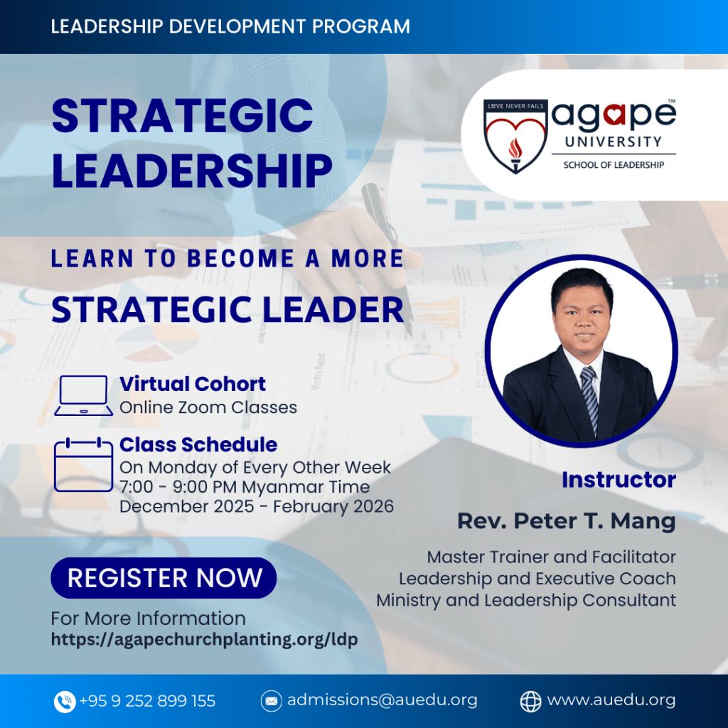 The Authentic Leadership Course is part of the Leadership Development Program offered by Agape University School of Leadership in collaboration with Agape Church Planting.